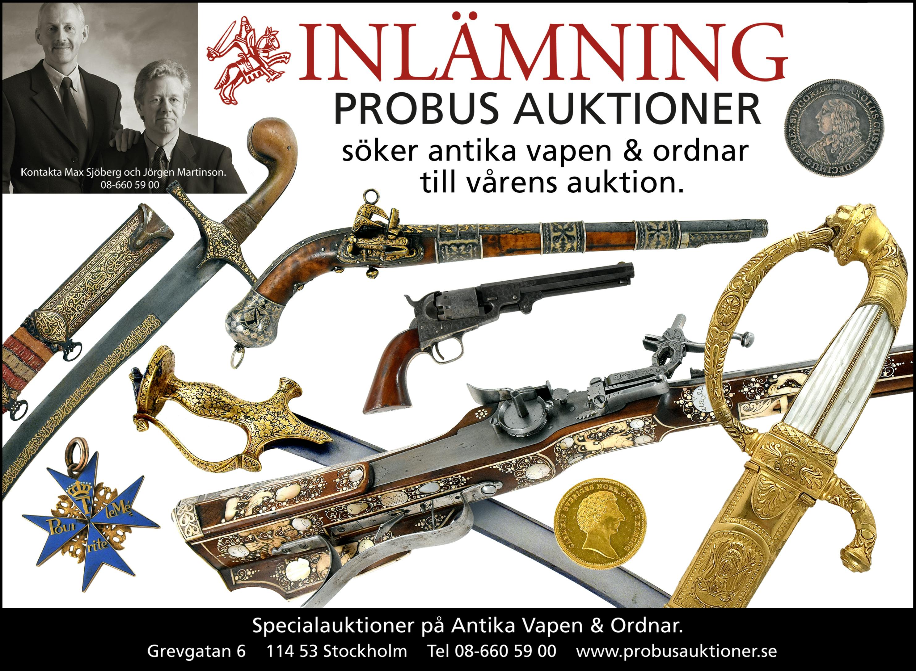 Med internationella specialauktioner på antika vapen och ordnar är Probus Auktioner norra Europas ledande auktionshus inom dessa specialområden.
